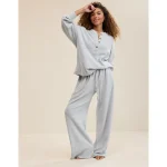 Real Good Everyday yarnRolled necklineRibbed trim on cuffs and hemPointelle deets and split cuffs on the sleevesThis style is heathered