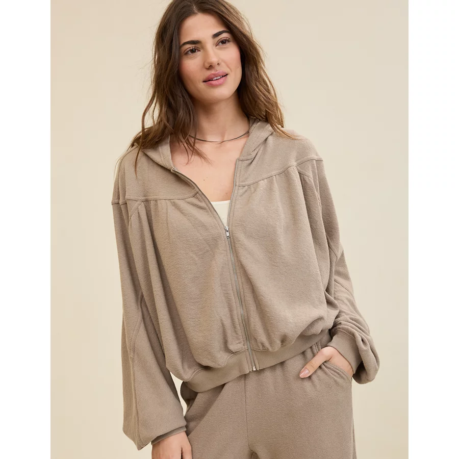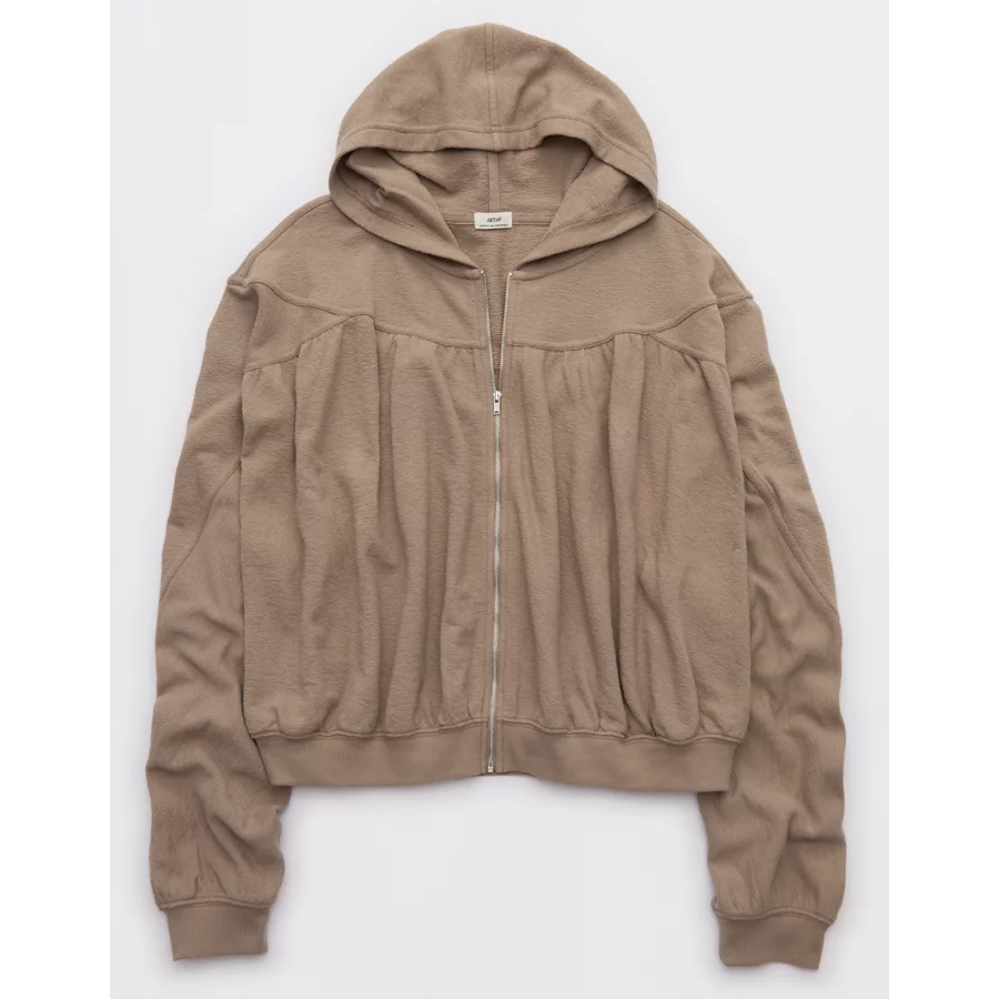 Aerie Soft Life Full Zip Sweatshirt – Beige