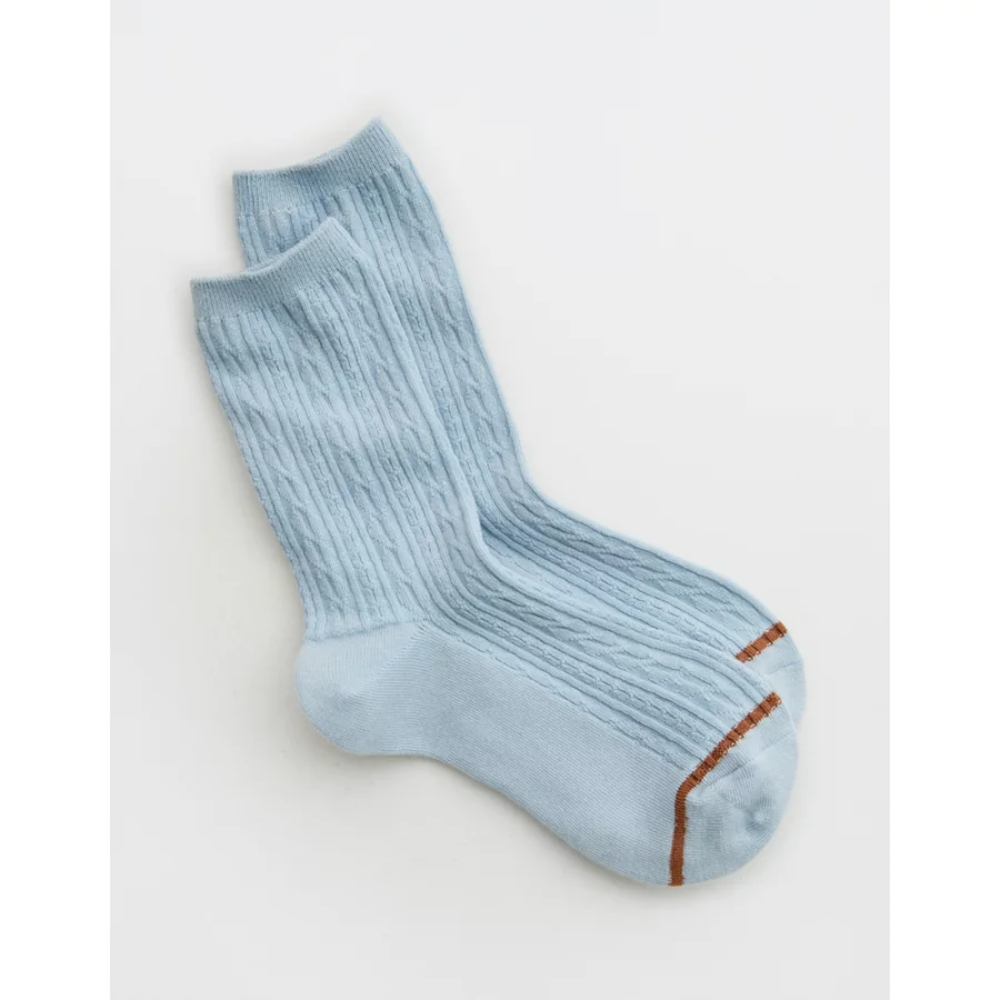 Aerie Solid Cable Crew Socks – Eyelet Blue