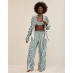 Real Good Everyday yarnRolled necklineRibbed trim on cuffs and hemPointelle deets and split cuffs on the sleevesStripedAccessibility deets: over-the-head access