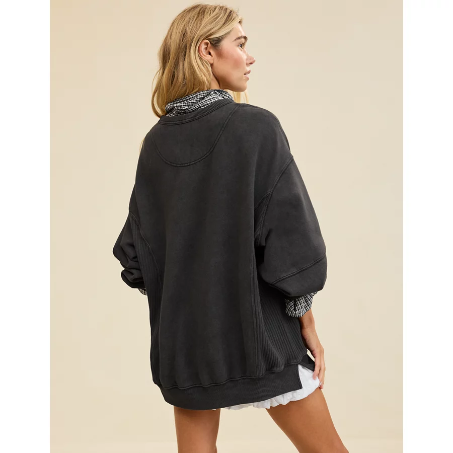 Ribbed trim on the crewneck, cuffs and hem