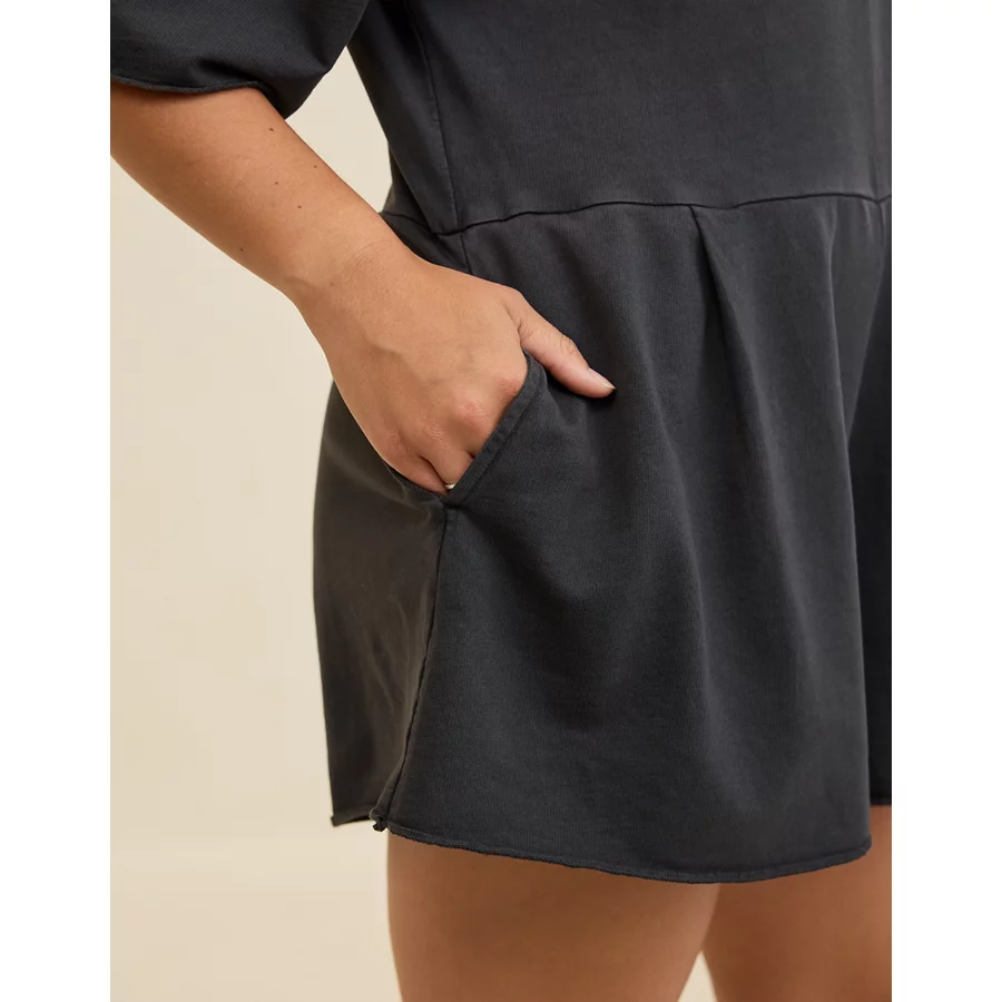 Mixed fabrics! Soft, stretchy knit bodice with a lightweight gauzey skirtScoop necklineSide seam pockets (!!)Accessibility deets: over-the-head access for easy