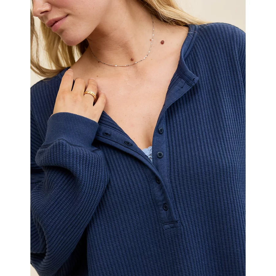Aerie Waffle Henley Sweatshirt – Navy