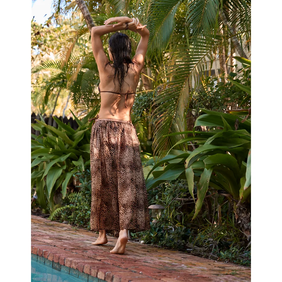 Lightweight gauze fabric with interior lining on top half Smocked waistCenter front slitFunctional buttons on the frontFemme ruffle and crochet