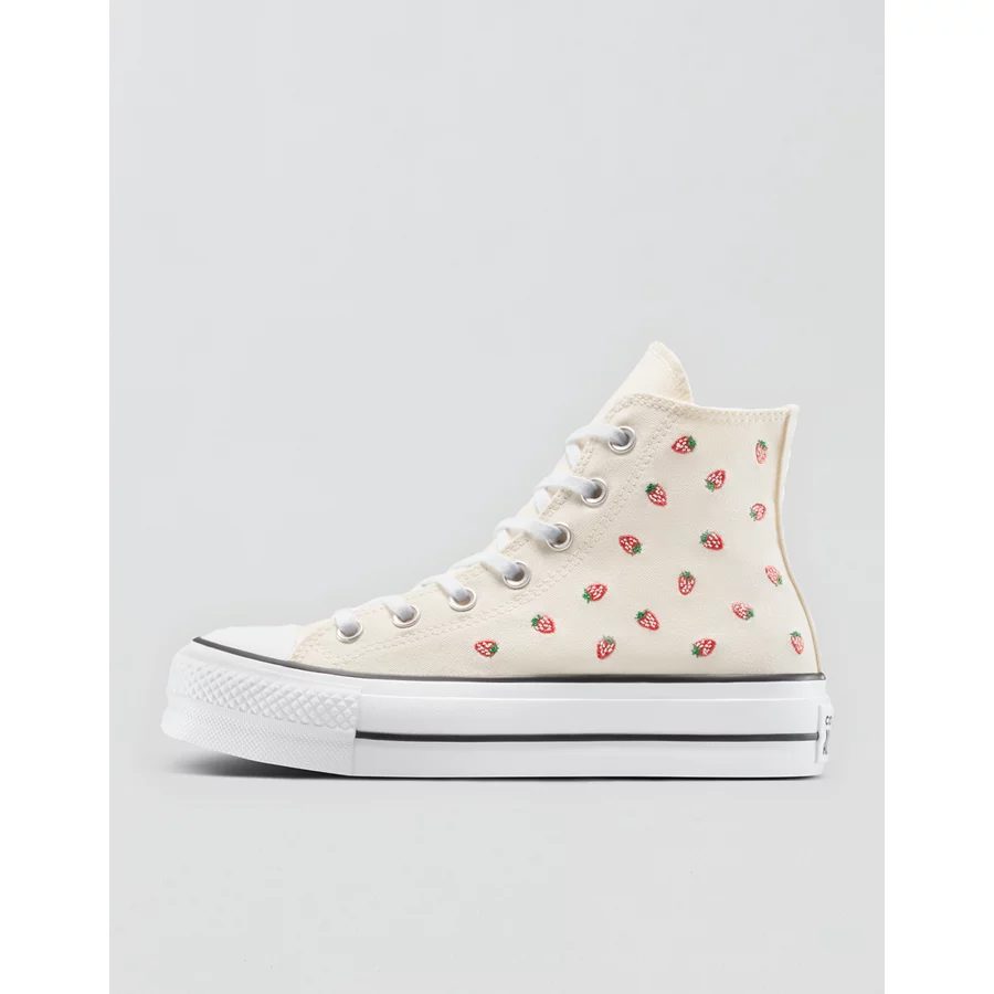 Converse Chuck Taylor All Star Lift Platform Embroidered Flowers Low-Top Sneaker - White