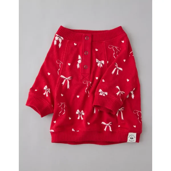 Plush PJ top for dogButton-up enclosure to get on and off your pup with ease 95% Recycled Polyester, 5% ElastaneMachine
