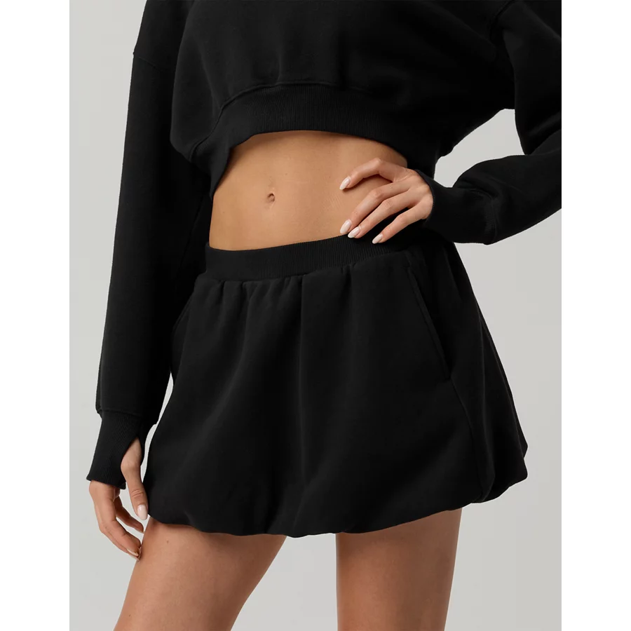 OFFLINE By Aerie Cloud Fleece Bubble Skort – True Black