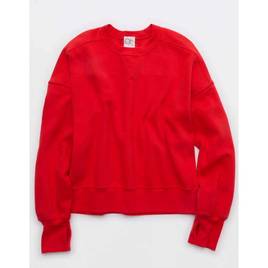 OFFLINE By Aerie Cloud Fleece Classic Crewneck Sweatshirt – Bright Red