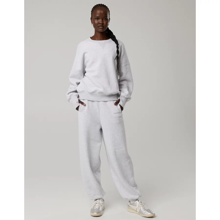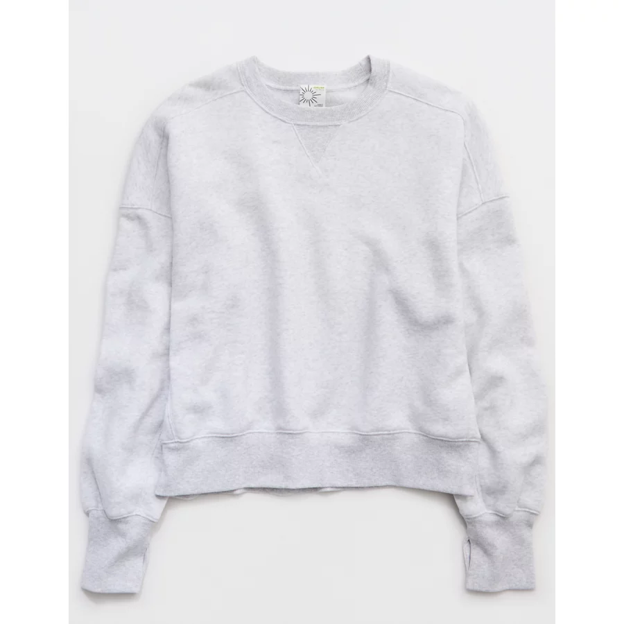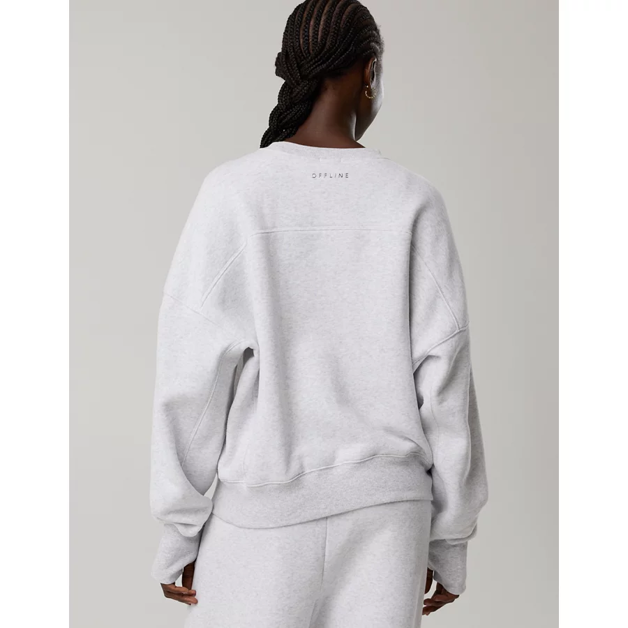OFFLINE By Aerie Cloud Fleece Classic Crewneck Sweatshirt – Light Heather Gray