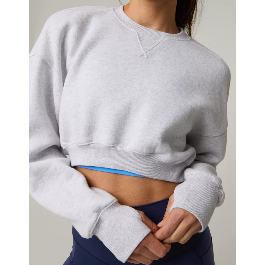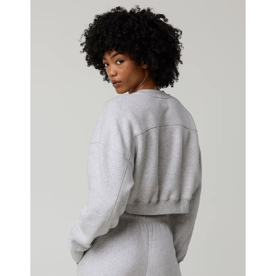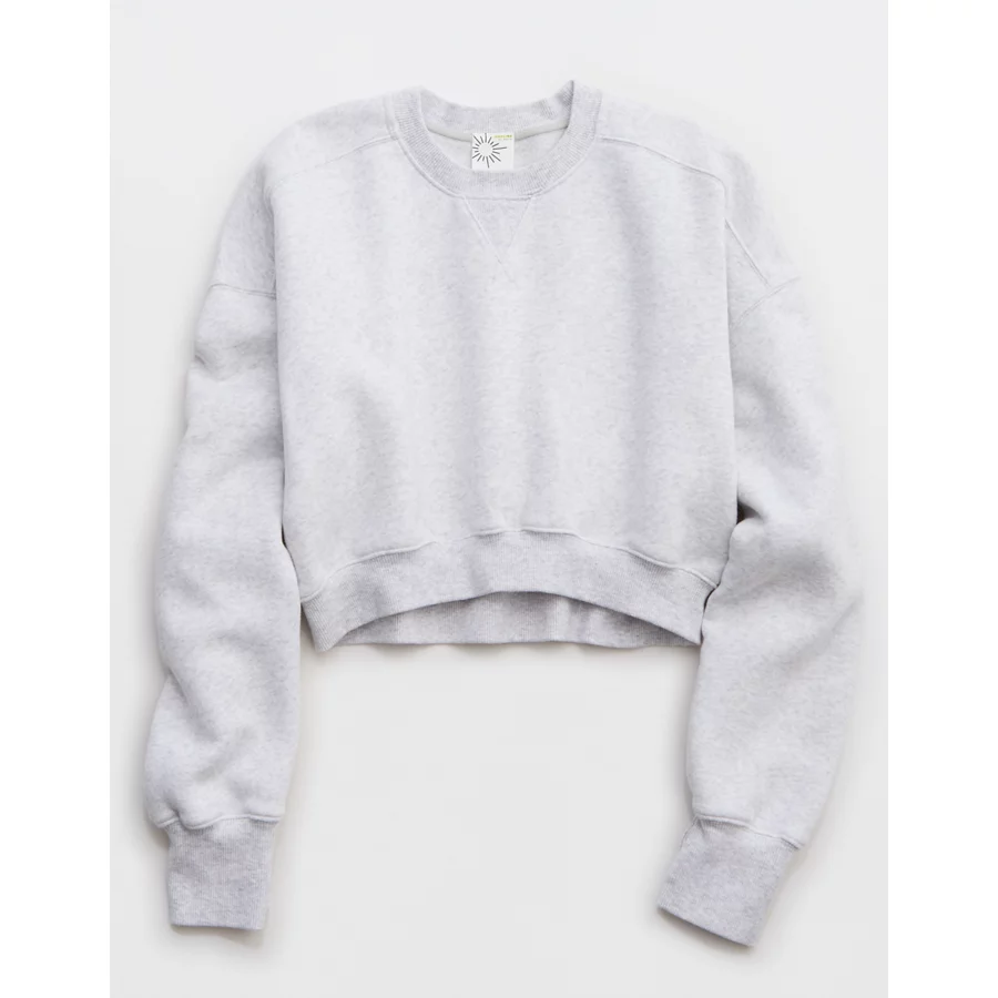 OFFLINE By Aerie Cloud Fleece Cropped Crewneck Sweatshirt – Light Heather Gray