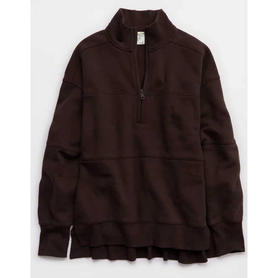 OFFLINE By Aerie Cloud Fleece Quarter Zip Sweatshirt – Deep Earth