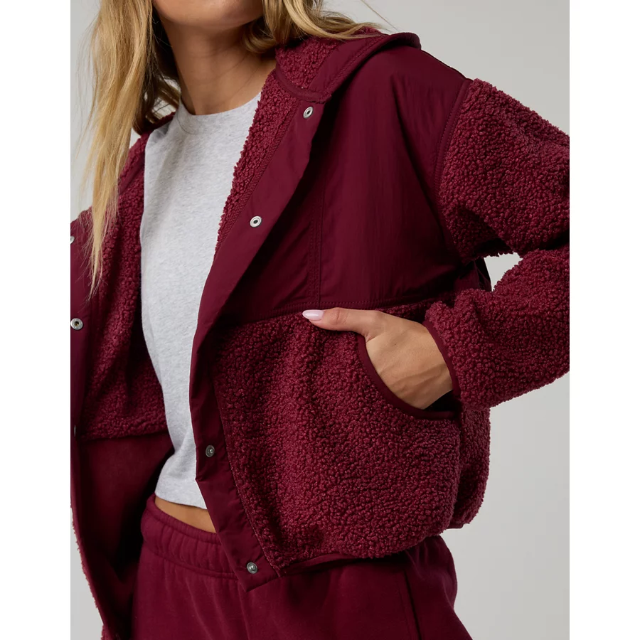OFFLINE By Aerie Fluff Love Sherpa Jacket – Deep Cherry