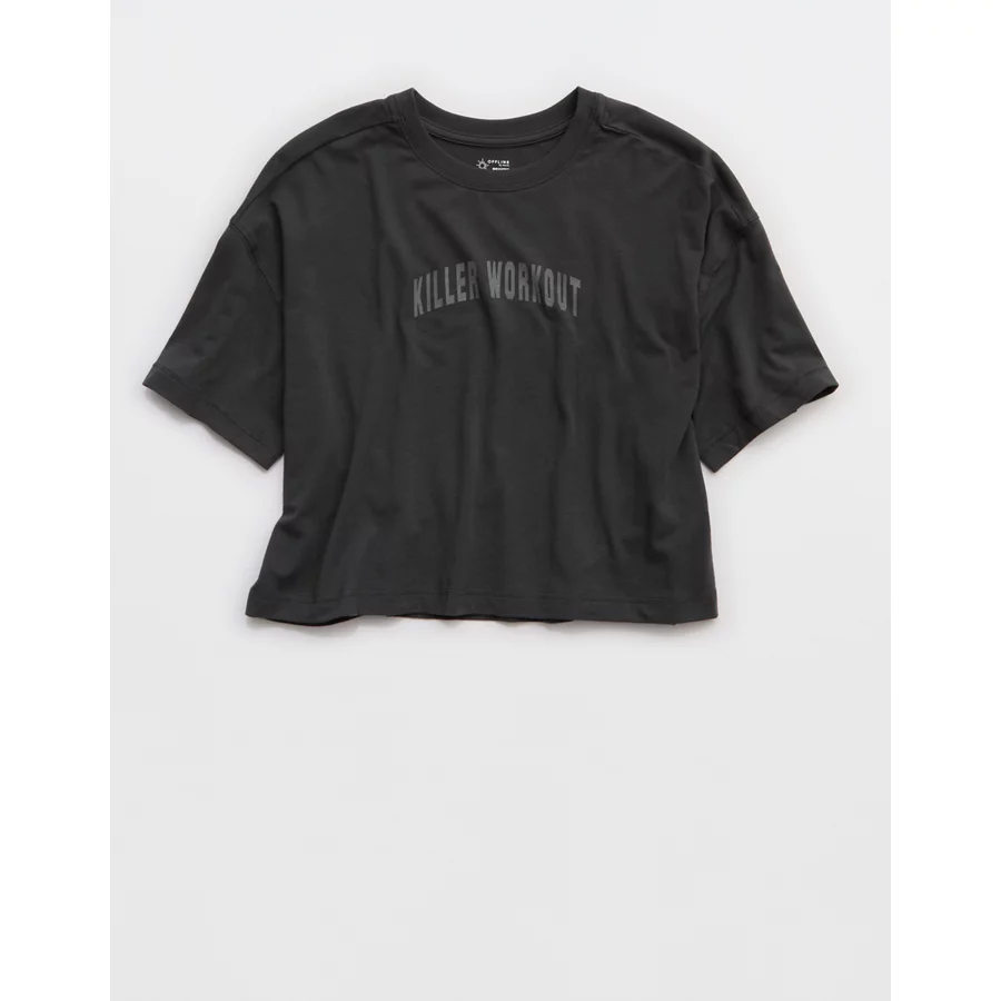 OFFLINE By Aerie Let’s Stretch Cropped T-Shirt – Smoked Gray