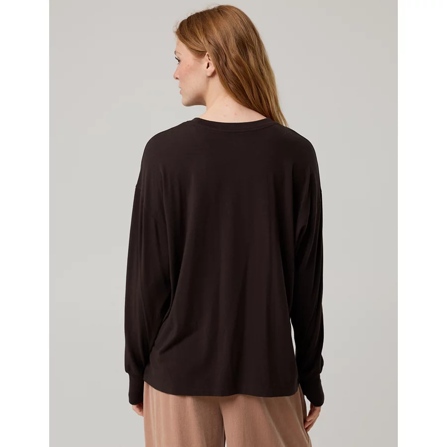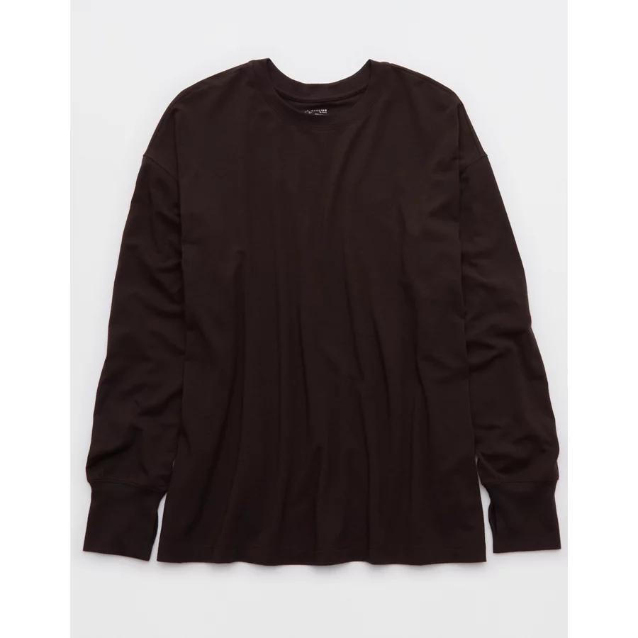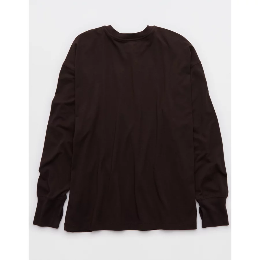 OFFLINE By Aerie Let’s Stretch Long Sleeve Boyfriend T-Shirt – Deep Earth