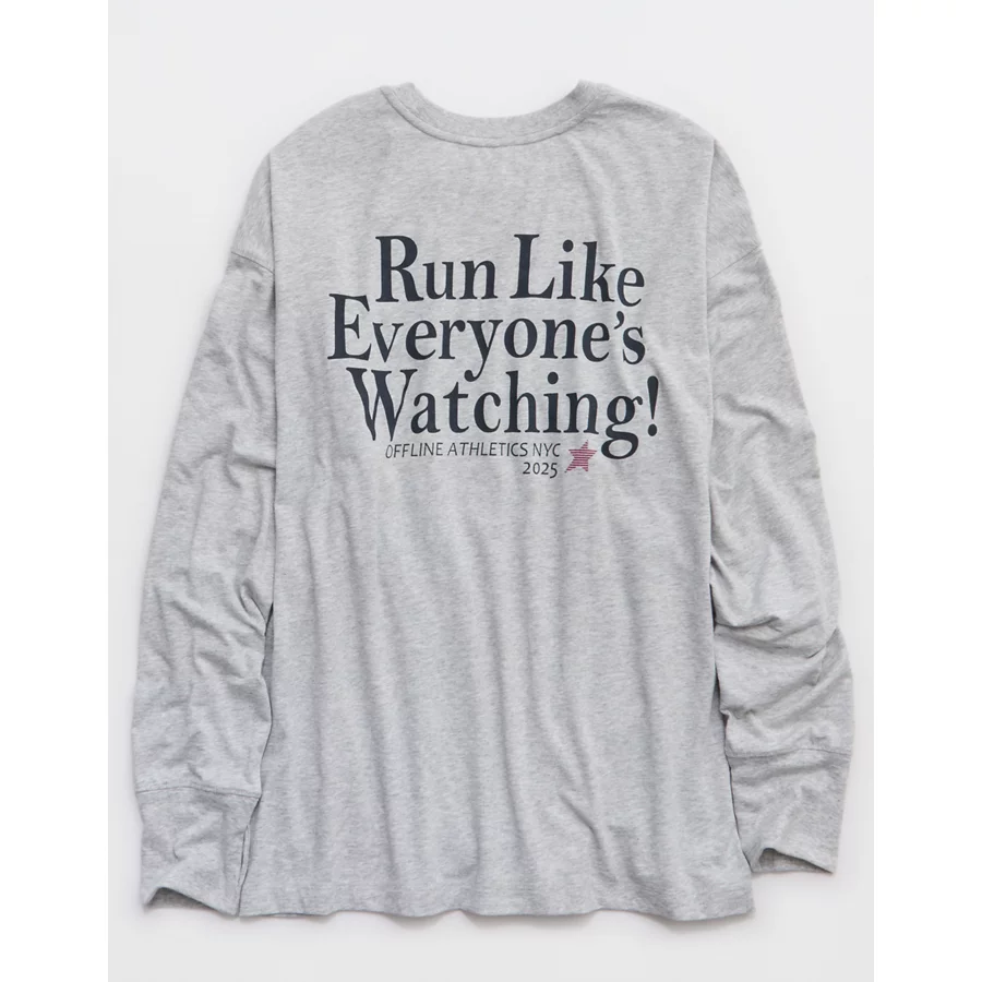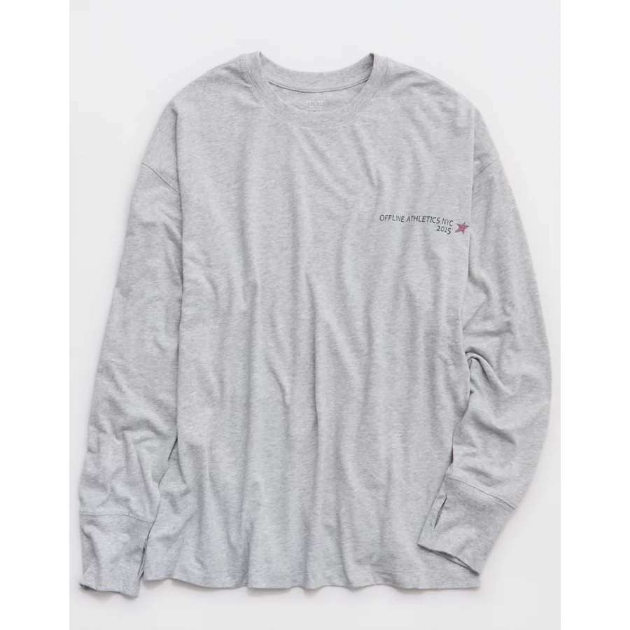 OFFLINE By Aerie Let’s Stretch Long Sleeve Boyfriend T-Shirt – Gray