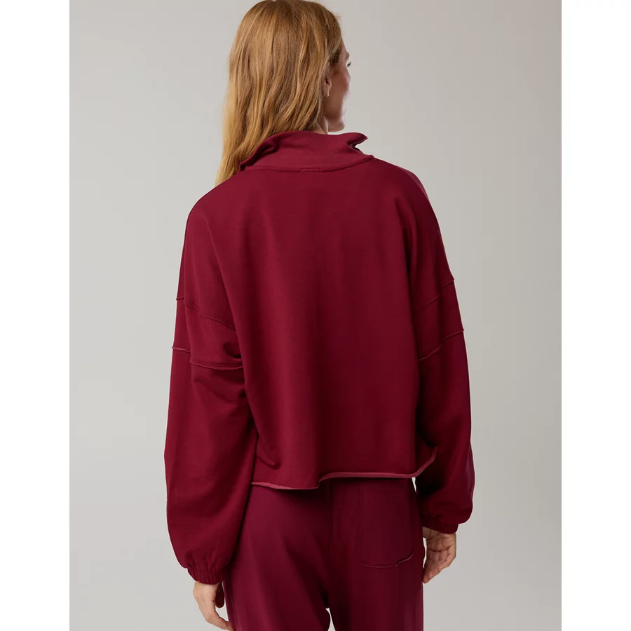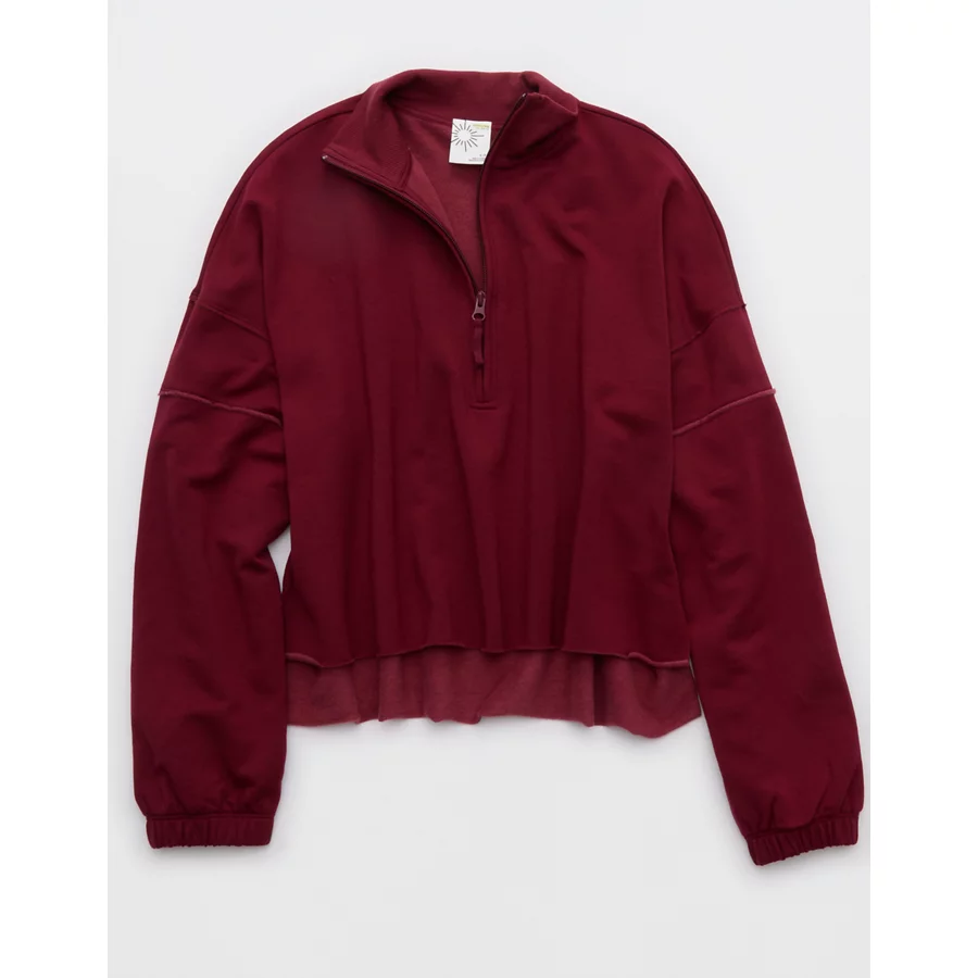 OFFLINE By Aerie OTT Seamed Quarter Zip Sweatshirt – Deep Cherry