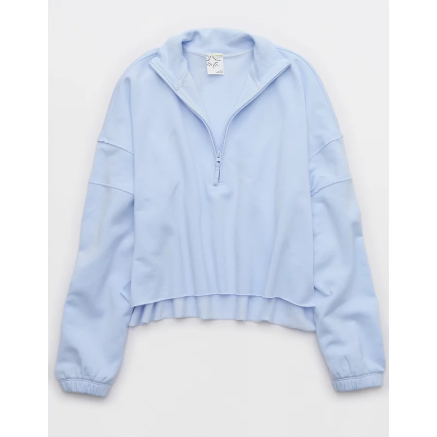 OFFLINE By Aerie OTT Seamed Quarter Zip Sweatshirt – Eyelet Blue