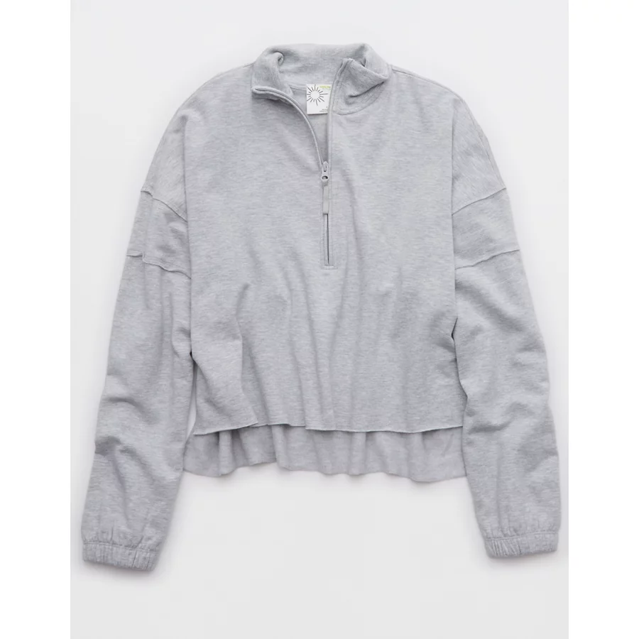 OFFLINE By Aerie OTT Seamed Quarter Zip Sweatshirt – Medium Heather Gray