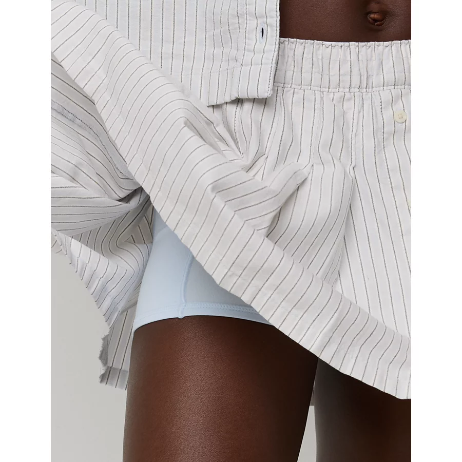Lightweight, airy cotton poplin in stripesElastic paperbag waistFunctional button front with drawstringLined with boxer shorts 100% CottonMachine washImported Mini length