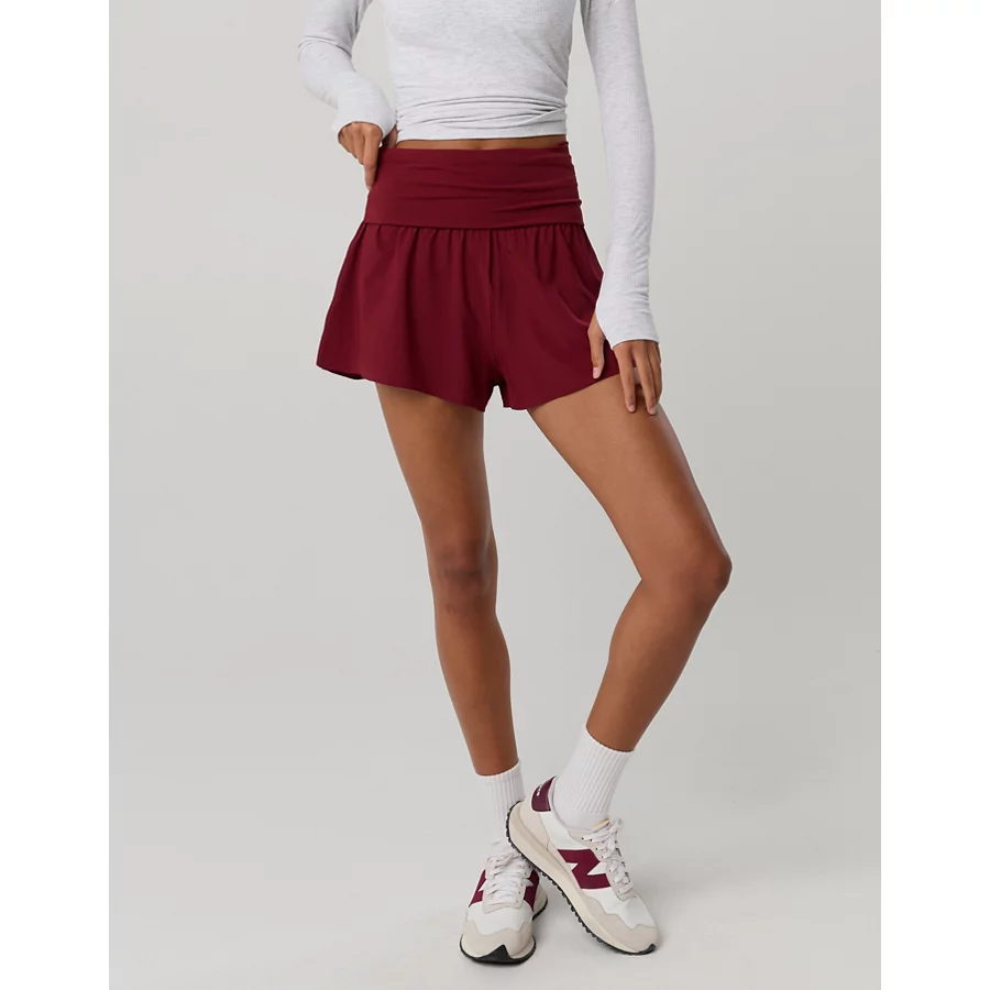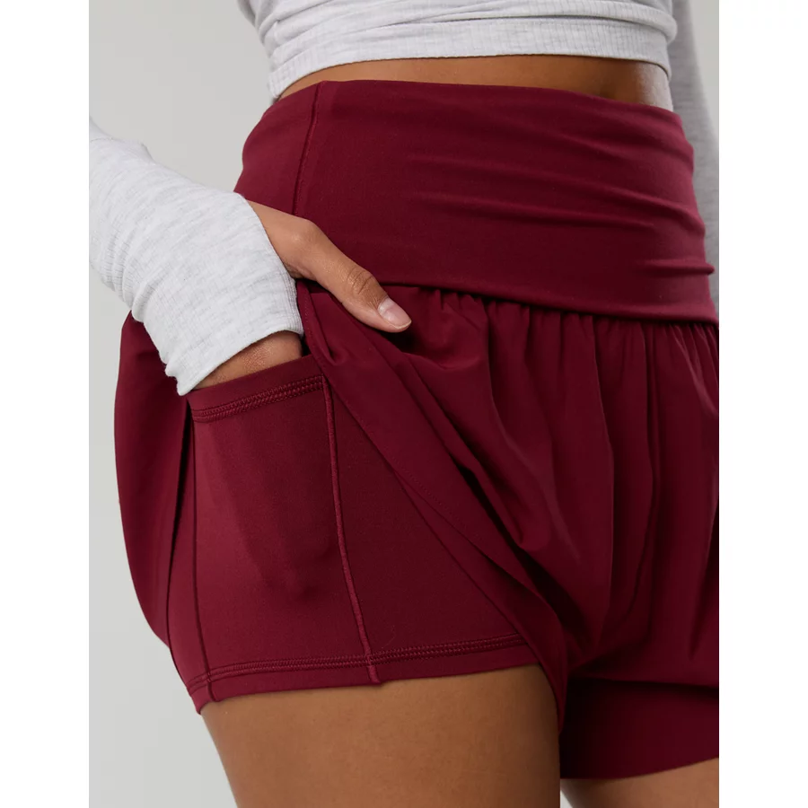 OFFLINE By Aerie Real Me Foldover Flowy Short – Deep Cherry
