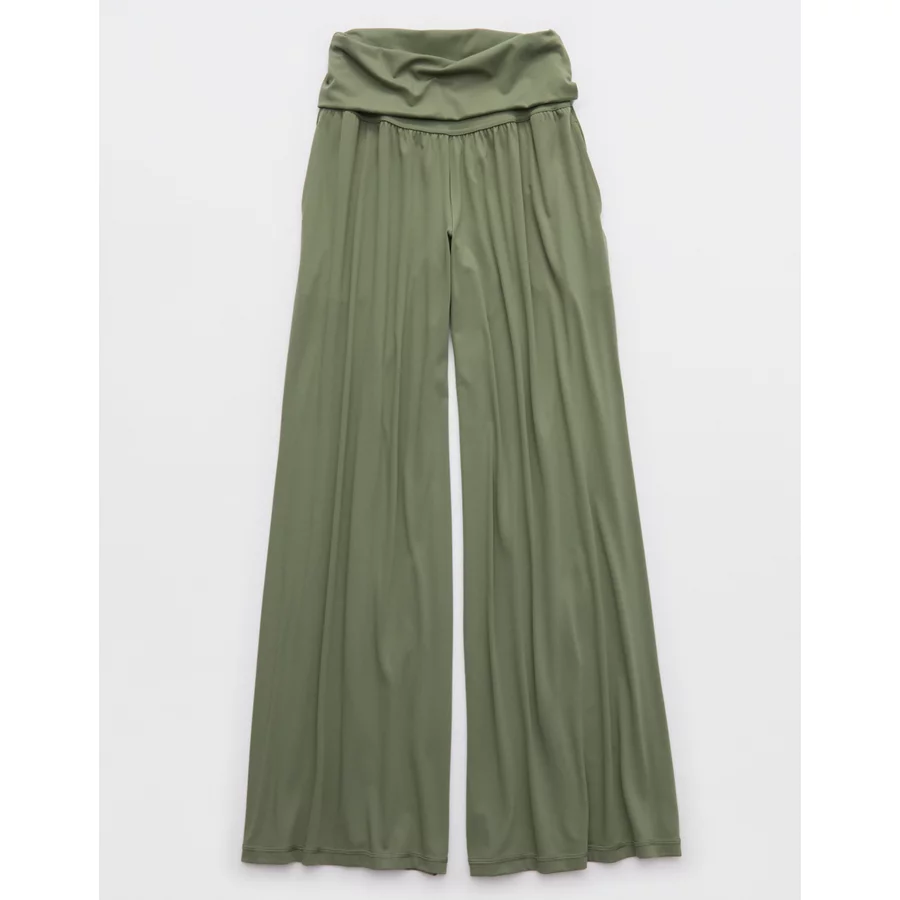 OFFLINE By Aerie Real Me Foldover Super Wide Leg Pant – Olive Fun