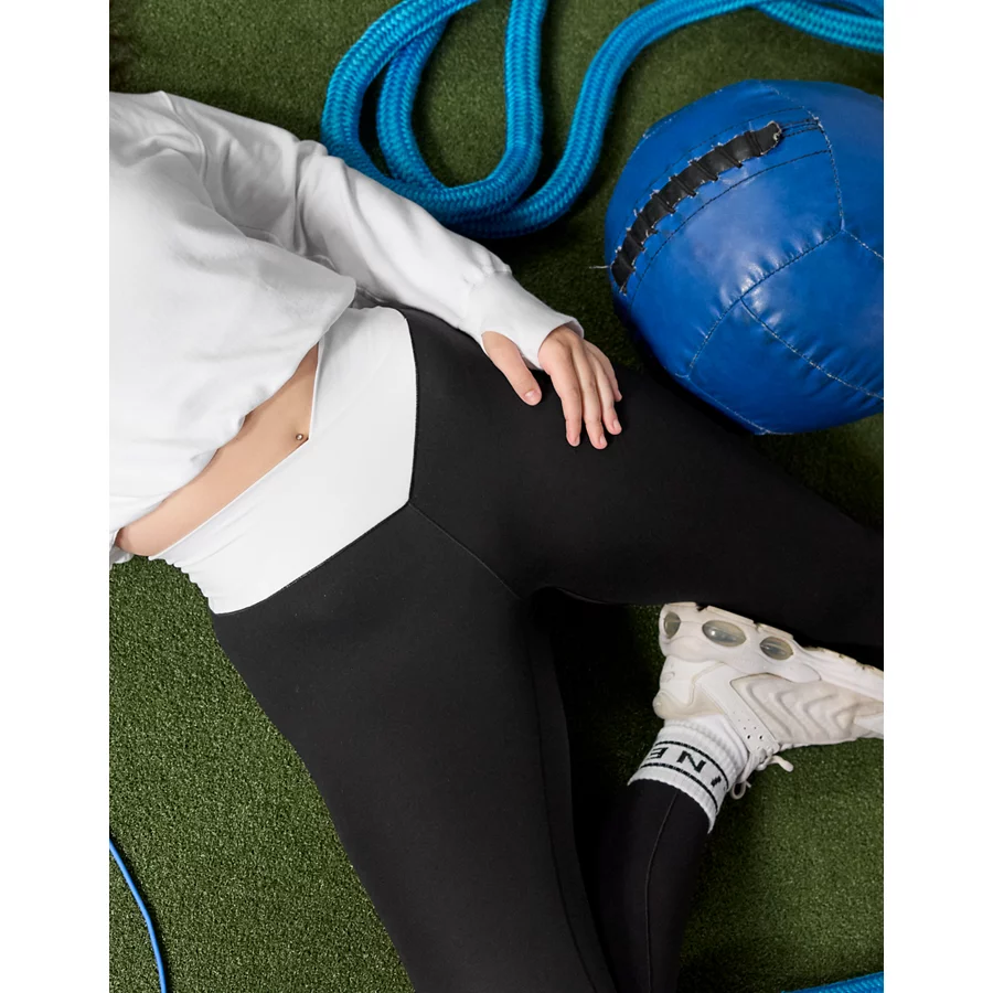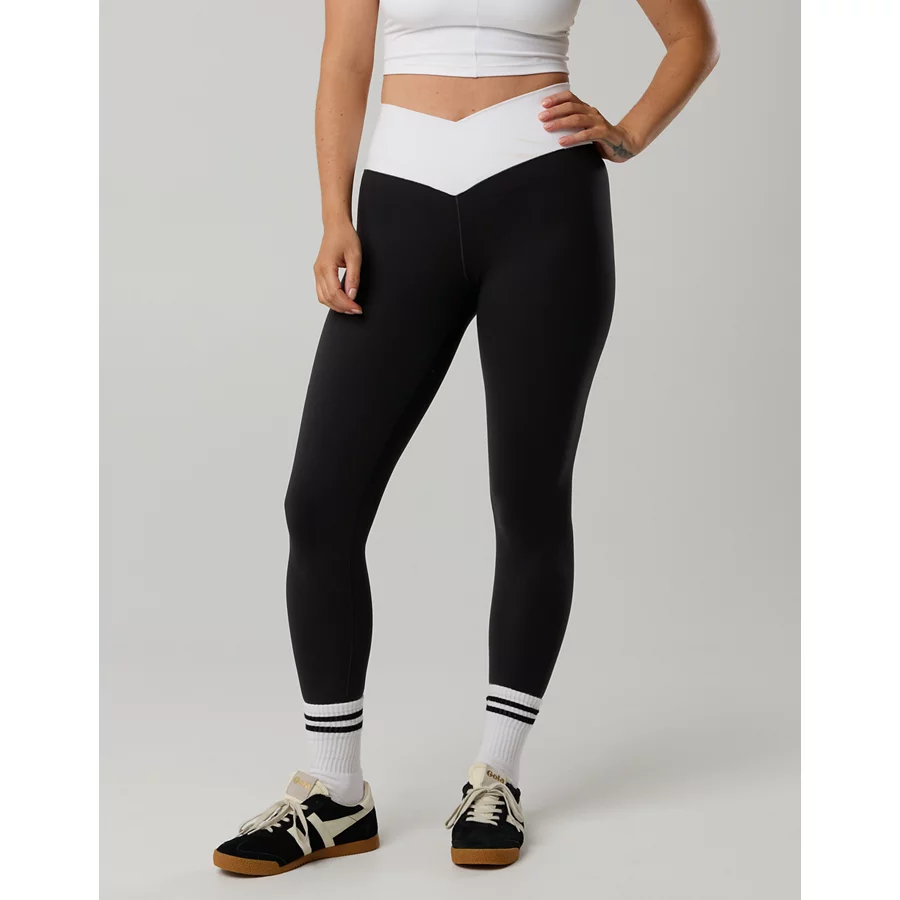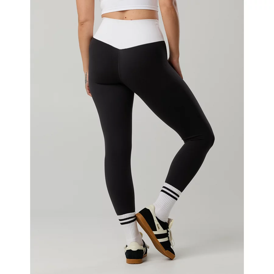 THE LOOK: Smooth with a matte finish. Crossover waistband with colorblock detailing.