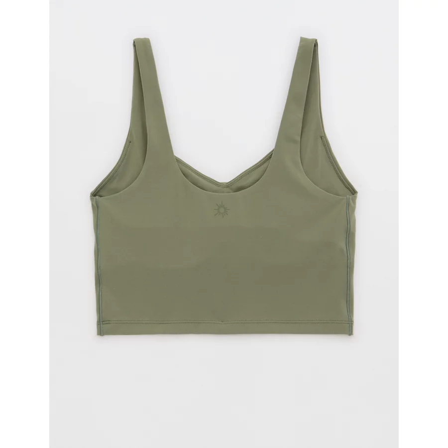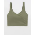 OFFLINE By Aerie Real Me Low Key Longline Sports Bra – Olive Fun