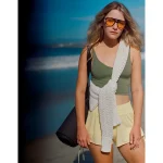Ultra-soft Real Good Buzzed Terry fabricNEW! UPF 50 sun protectionStrappy back deets! 85% Recycled Nylon, 15% ElastaneUse a mild detergent
