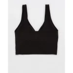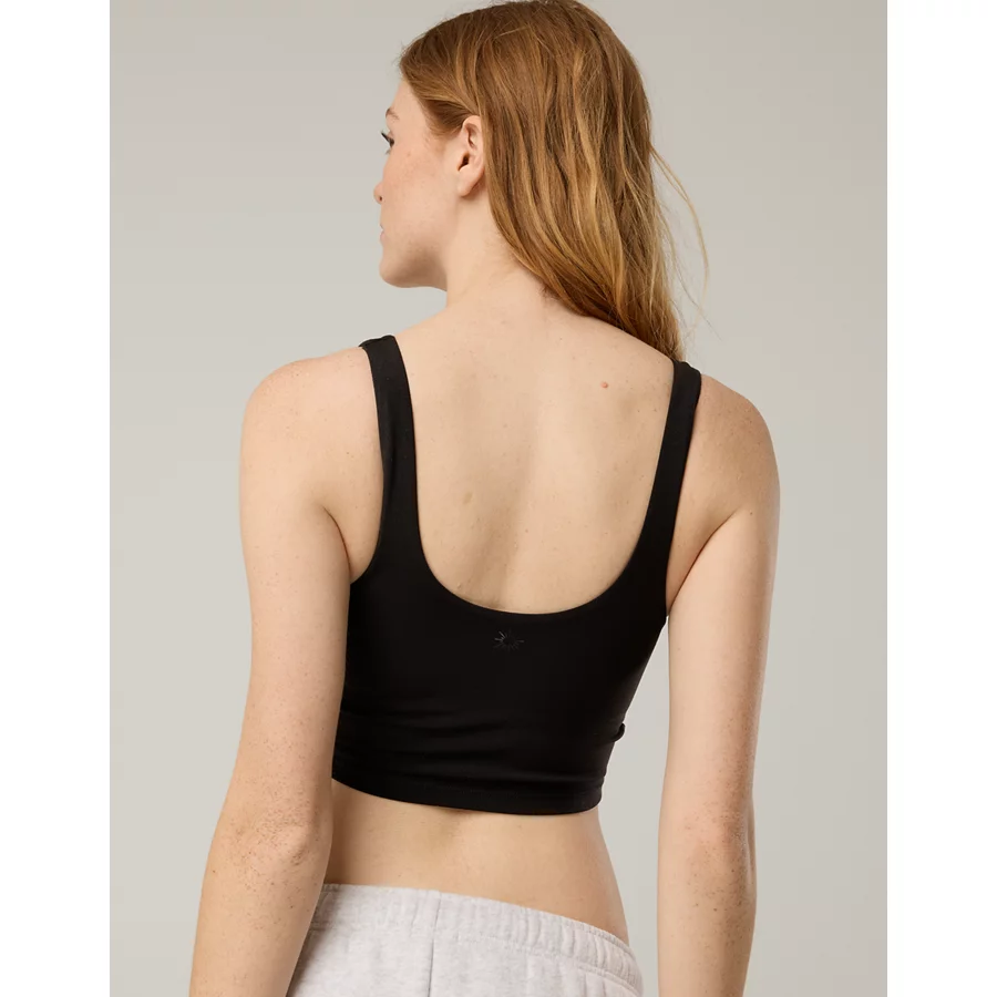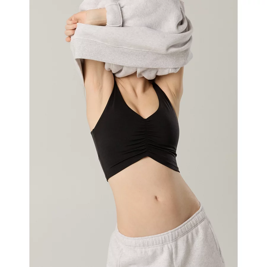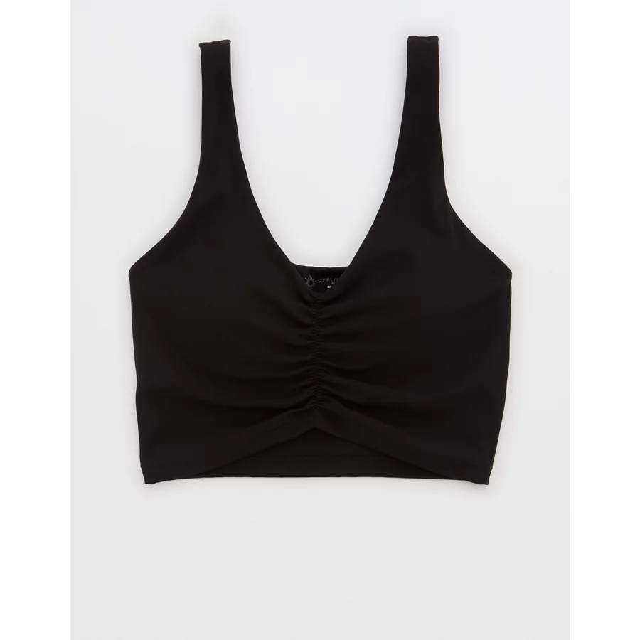 OFFLINE By Aerie Real Me Low Key Ruched Longline Sports Bra – True Black