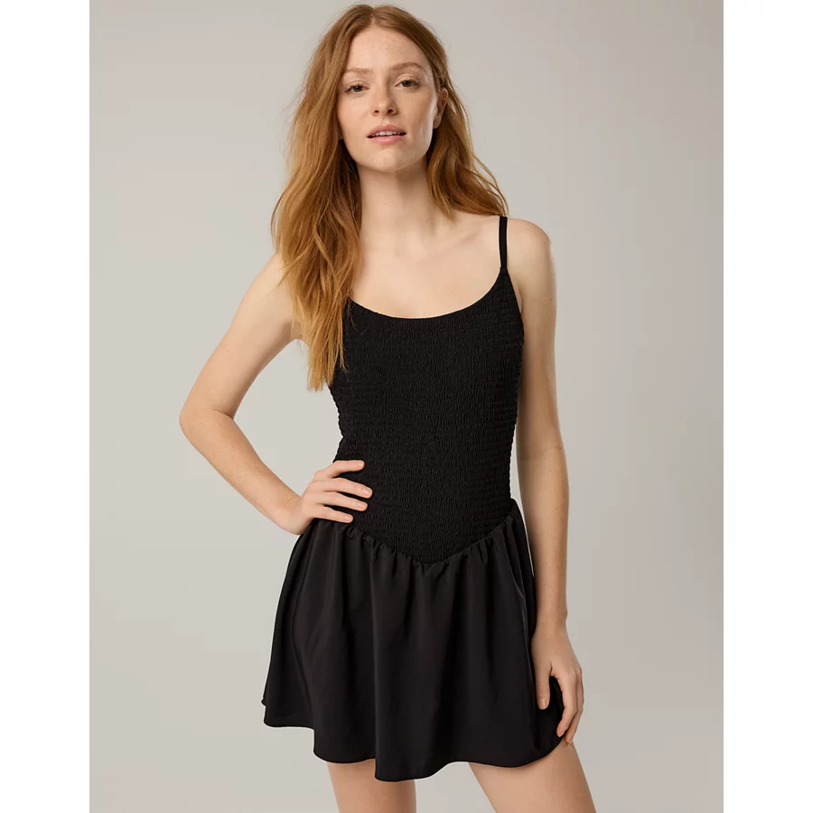 OFFLINE By Aerie Real Me Smocked Flowy Dress – True Black