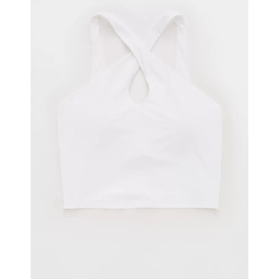 OFFLINE By Aerie Real Me XTRA Criss Cross High Neck Sports Bra – White