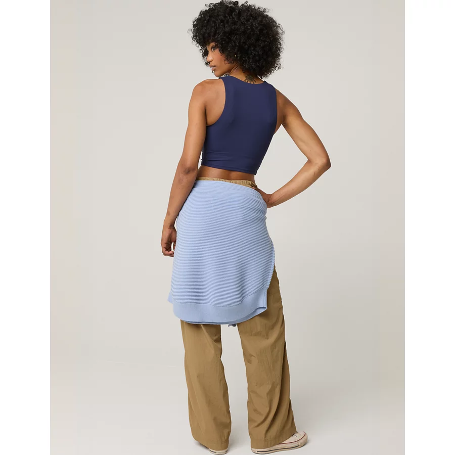 Real Good Everyday yarnRolled necklineRibbed trim on cuffs and hemPointelle deets and split cuffs on the sleevesThis style is heathered
