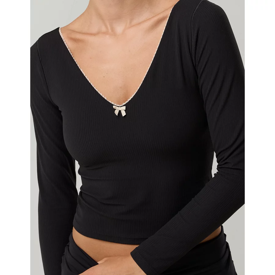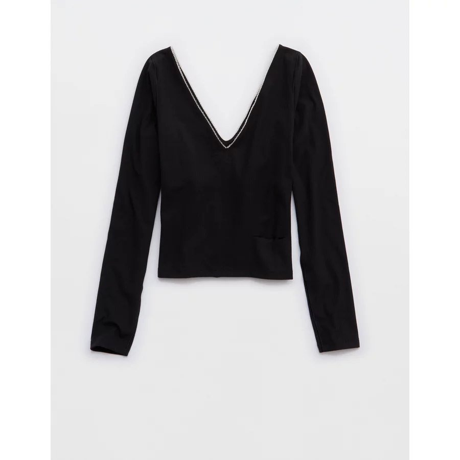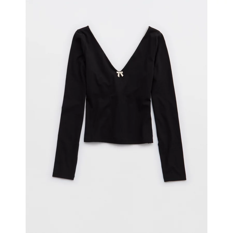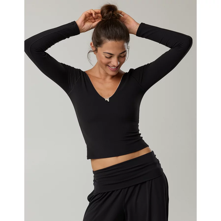 OFFLINE By Aerie Real Me XTRA Rib Open V-Neck T-Shirt – True Black