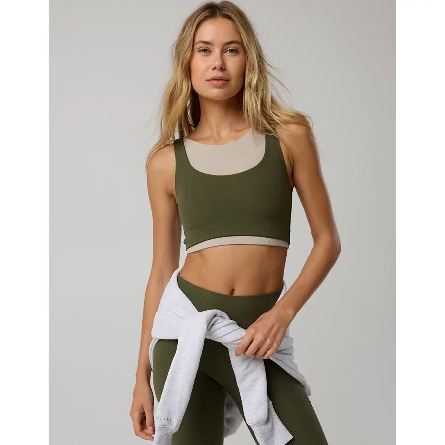 OFFLINE By Aerie Real Me XTRA Rib Switch Up High Neck Sports Bra – Military Green