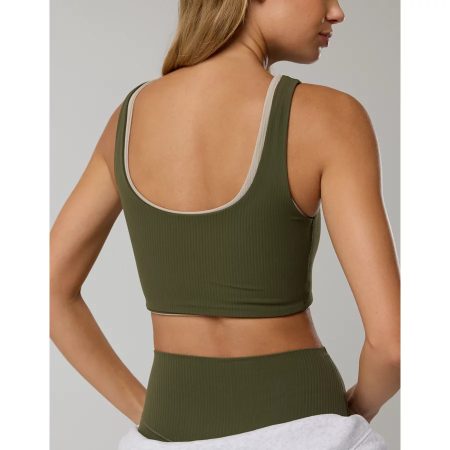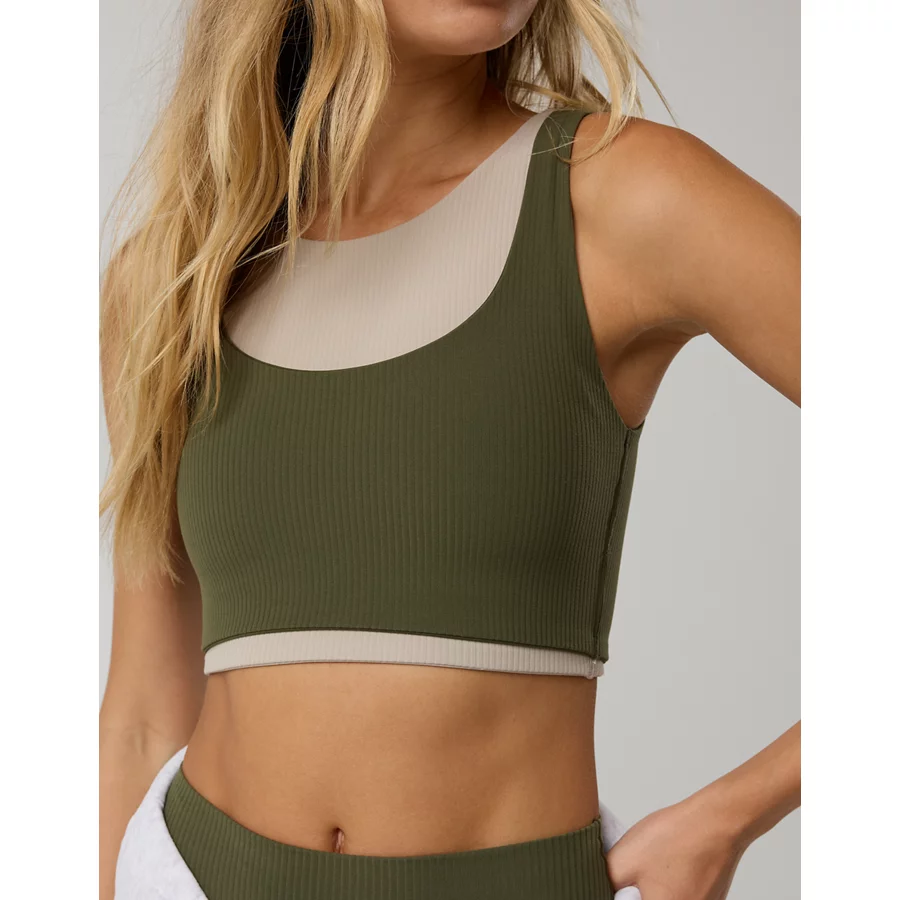 OFFLINE By Aerie Real Me XTRA Rib Switch Up V-Neck Sports Bra - Deep Earth