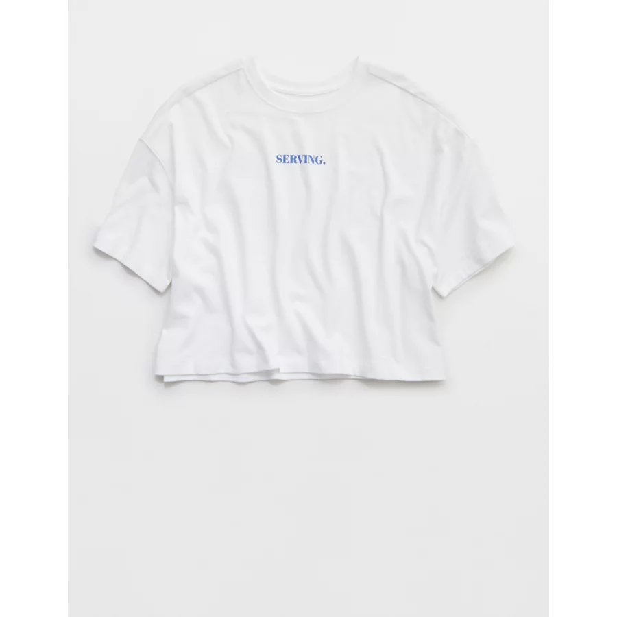 OFFLINE By Aerie Rock N Roll Cropped T-Shirt – White