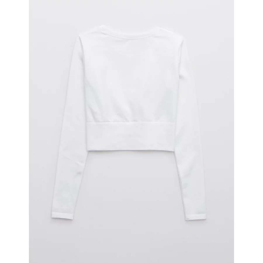 OFFLINE By Aerie Sidewalk Seamless Long Sleeve Cropped T-Shirt – White