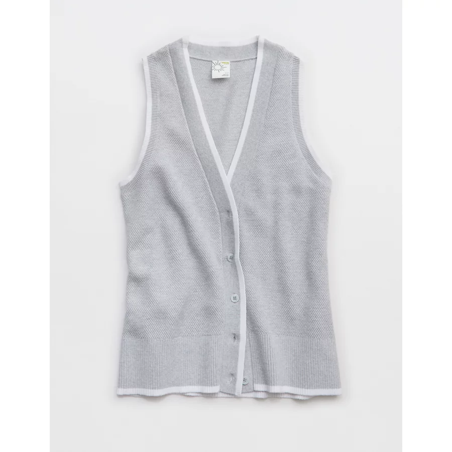 OFFLINE By Aerie Tennis Sweater Vest Cardigan – Medium Heather Gray