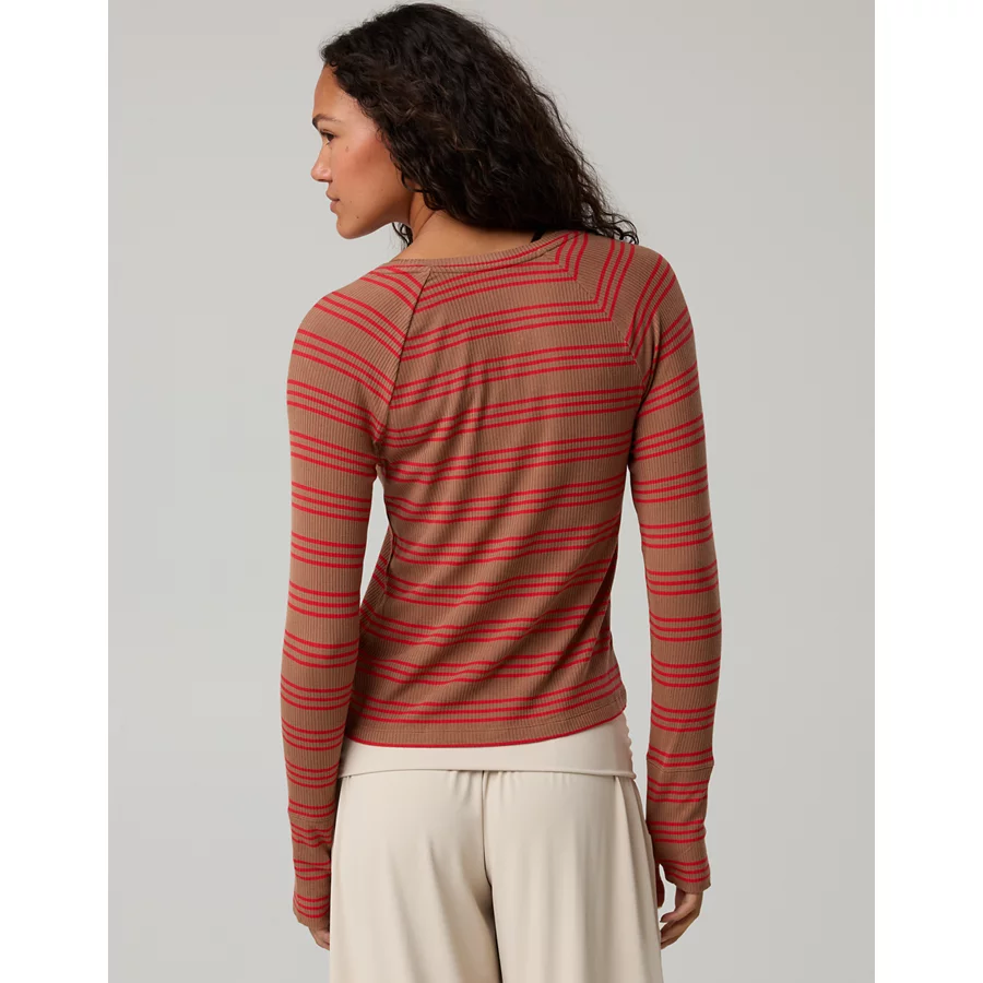 Real Good Everyday yarnRolled necklineRibbed trim on cuffs and hemPointelle deets and split cuffs on the sleevesStripedAccessibility deets: over-the-head access