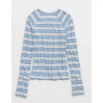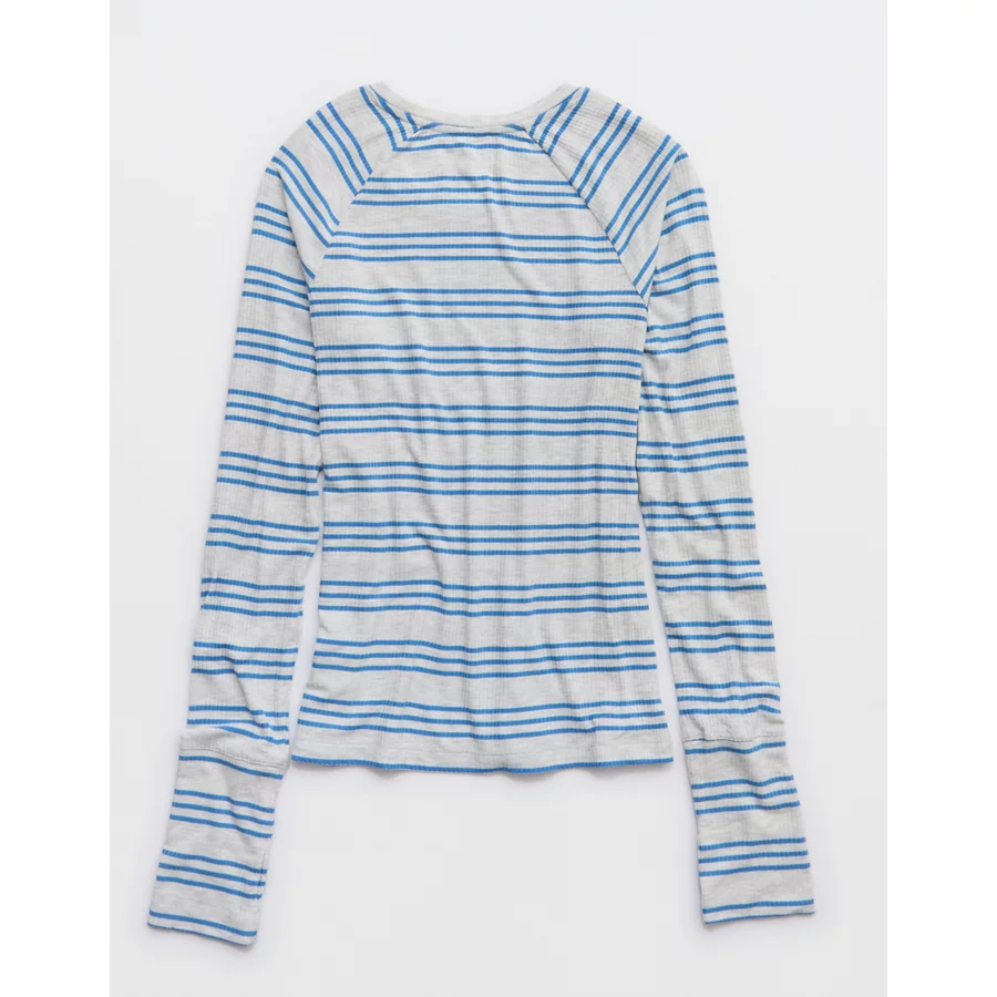 OFFLINE By Aerie Thumbs Up Fitted Ribbed T-Shirt - Eyelet Blue