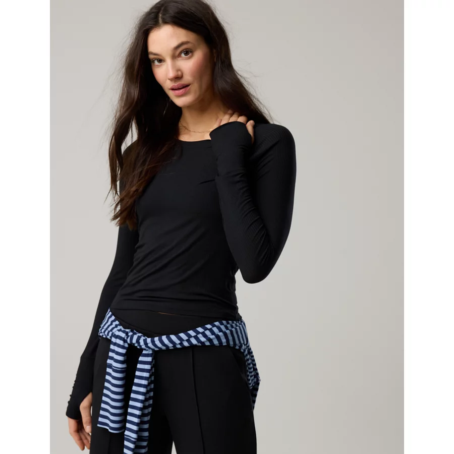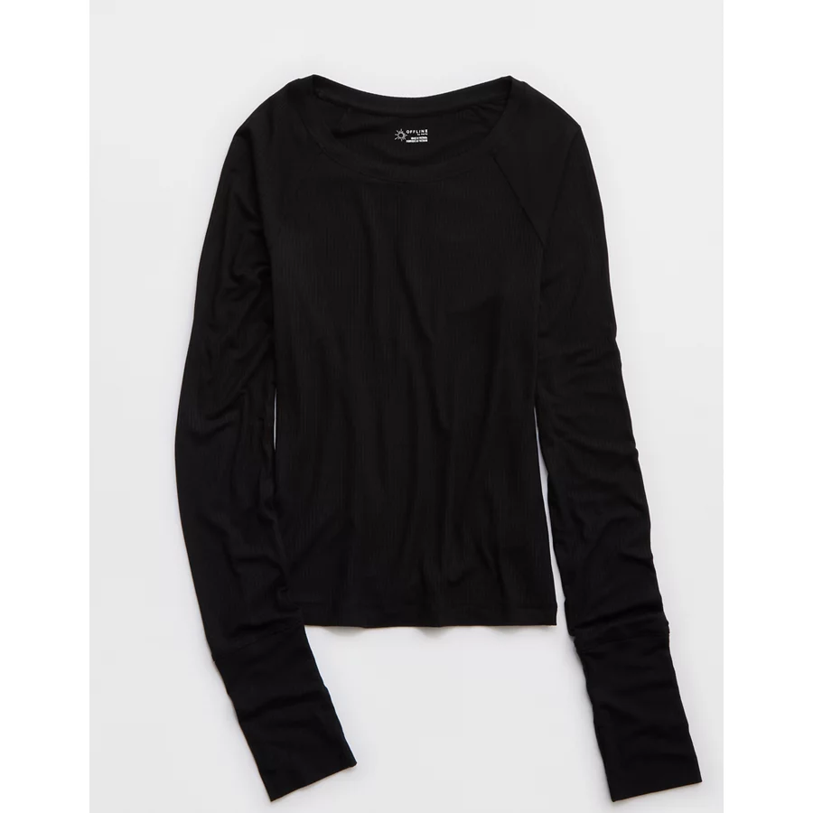 OFFLINE By Aerie Thumbs Up Fitted Ribbed T-Shirt – True Black
