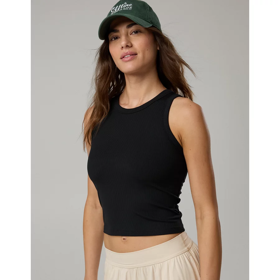 OFFLINE By Aerie Thumbs Up Heavyweight Cropped Tank Top – True Black