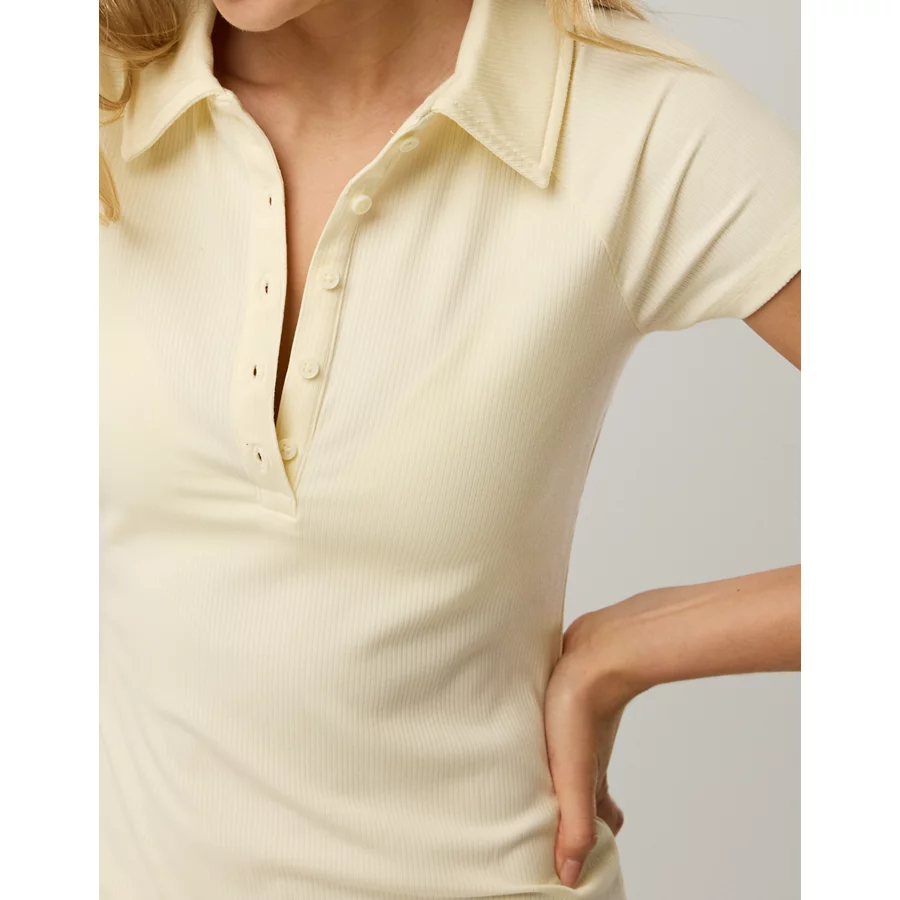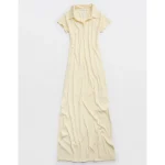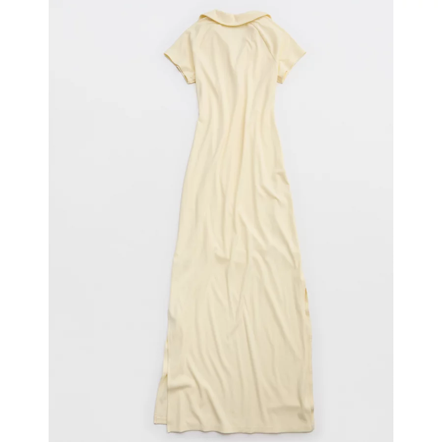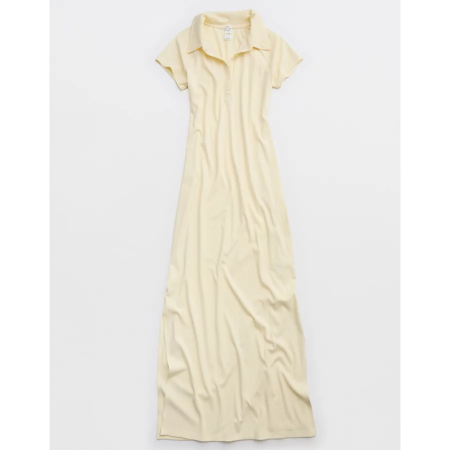 OFFLINE By Aerie Thumbs Up Heavyweight Polo Maxi Dress – Natural Yellow