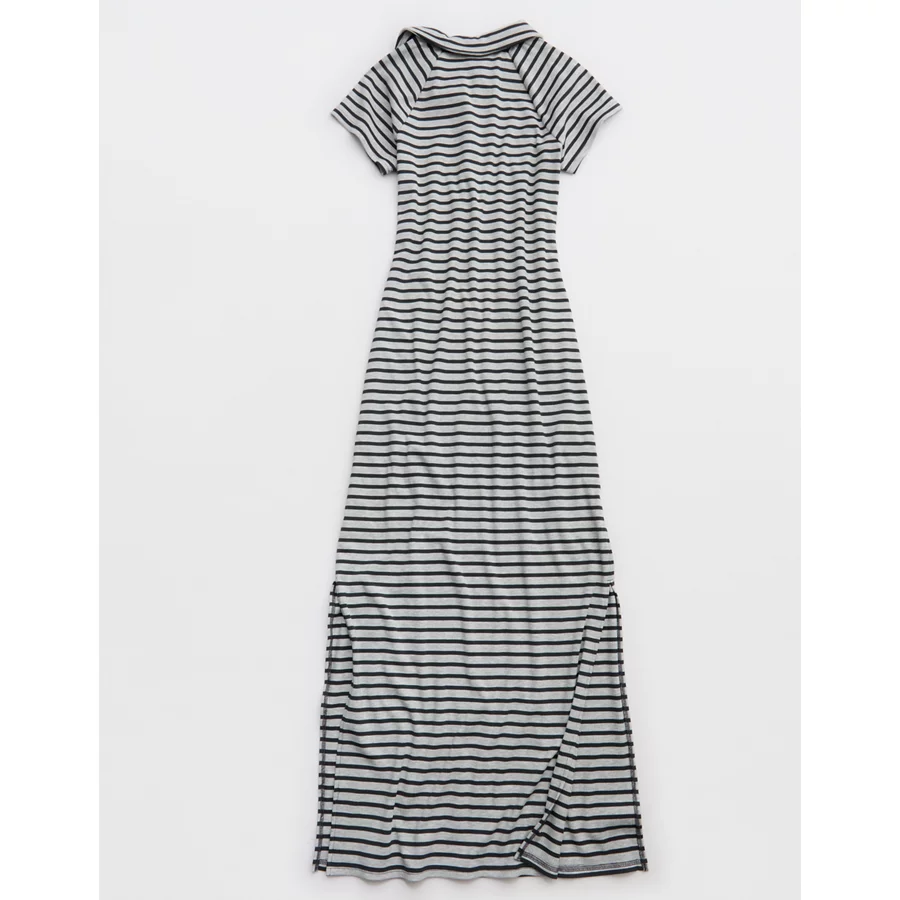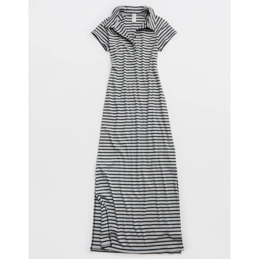 OFFLINE By Aerie Thumbs Up Heavyweight Polo Maxi Dress – Smoked Gray