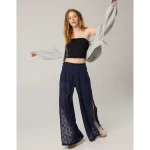 Lightweight gauze fabric with interior lining on top half Smocked waistCenter front slitFunctional buttons on the frontFemme ruffle and crochet