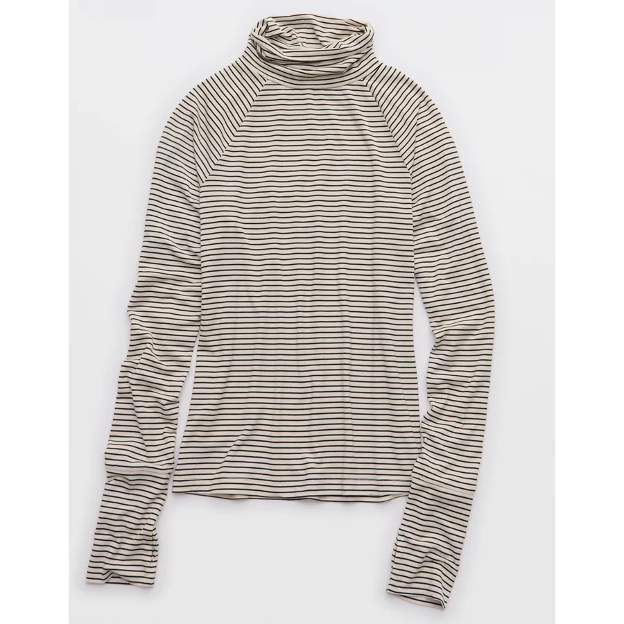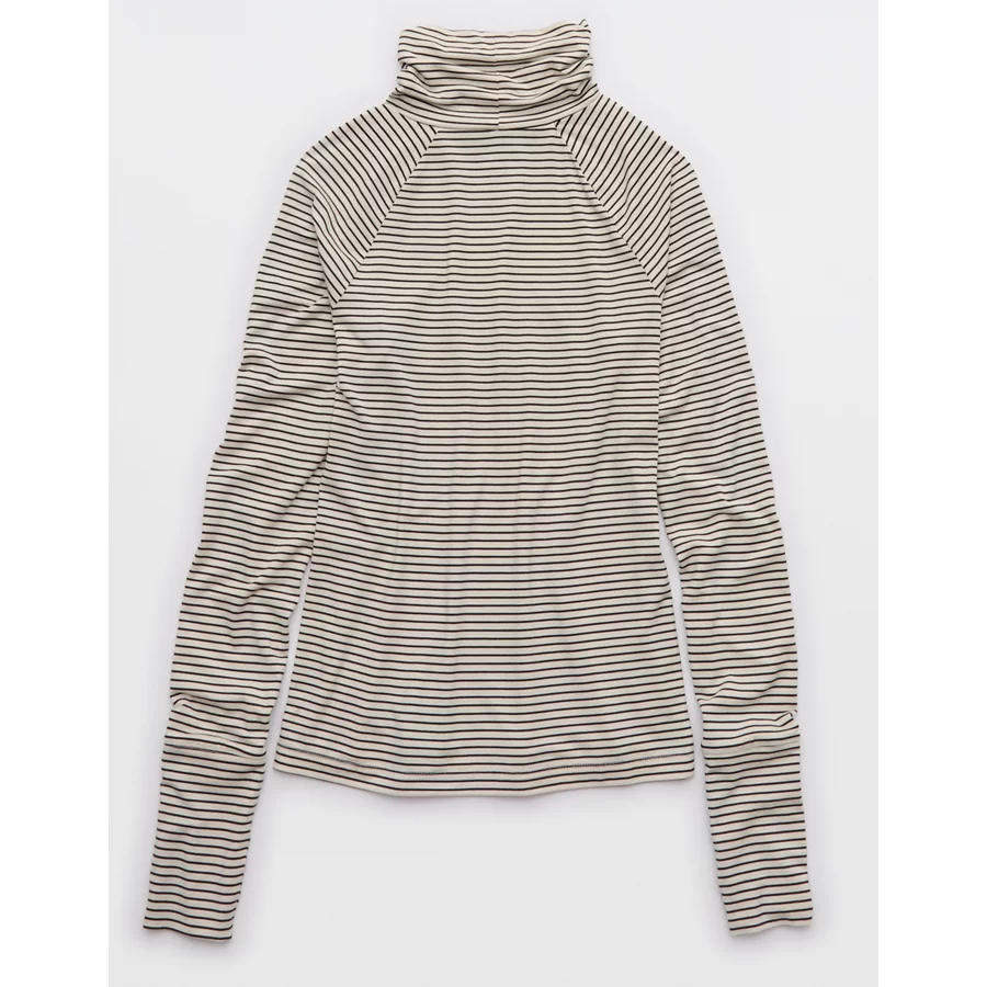 OFFLINE By Aerie Thumbs Up Long Sleeve Turtleneck Shirt – Black