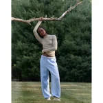 Real Good Everyday yarnRolled necklineRibbed trim on cuffs and hemPointelle deets and split cuffs on the sleevesThis style is heathered