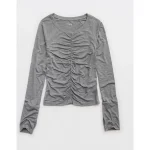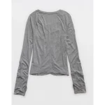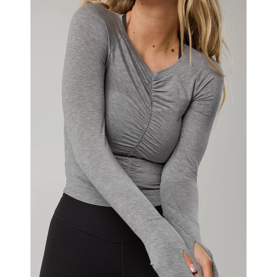 OFFLINE By Aerie Thumbs Up Ruched Long Sleeve T-Shirt – Dark Heather Gray