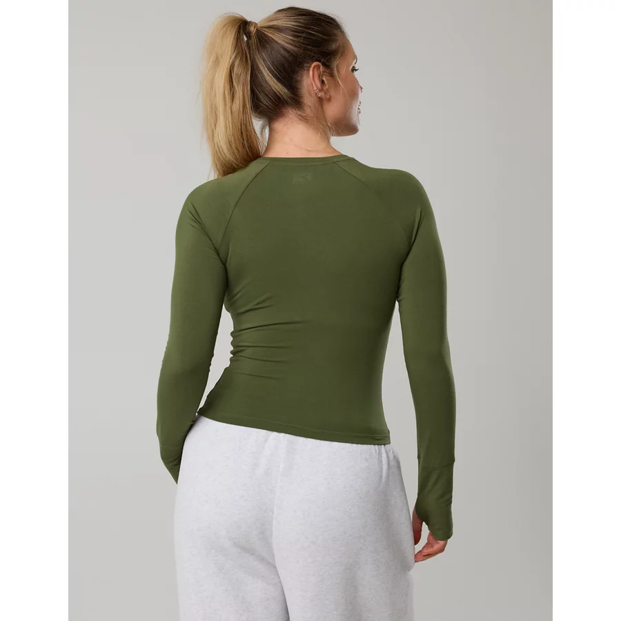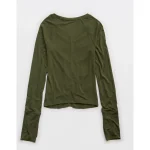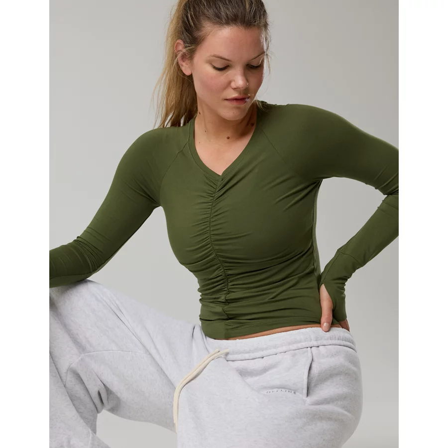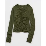 OFFLINE By Aerie Thumbs Up Ruched Long Sleeve T-Shirt – Military Green