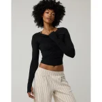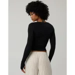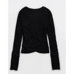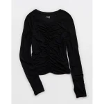 OFFLINE By Aerie Thumbs Up Ruched Long Sleeve T-Shirt – True Black